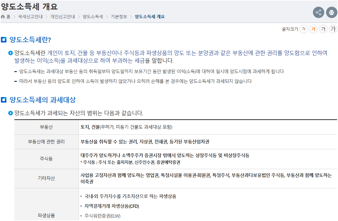 👉 국세청 양도소득세 안내