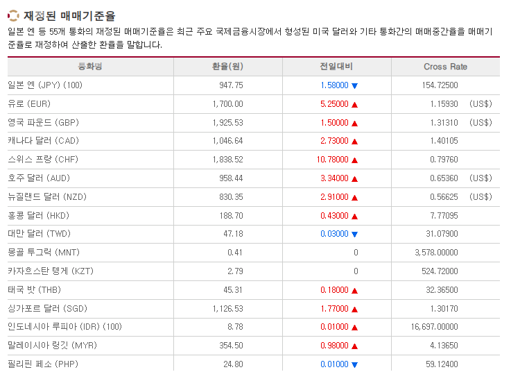 엔화와 유로의 실시간 환율 조회는 각 통화의 특성 때문에 달러와 다른 방식으로 해석해야 합니다.