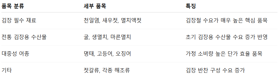 김장철 최적화 품목 확대: 천일염·새우젓 등 필수 재료 중심
