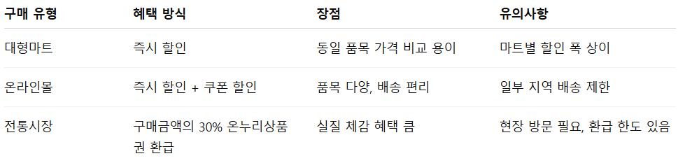 마트·온라인·전통시장 혜택을 나눠 활용해야 합니다.