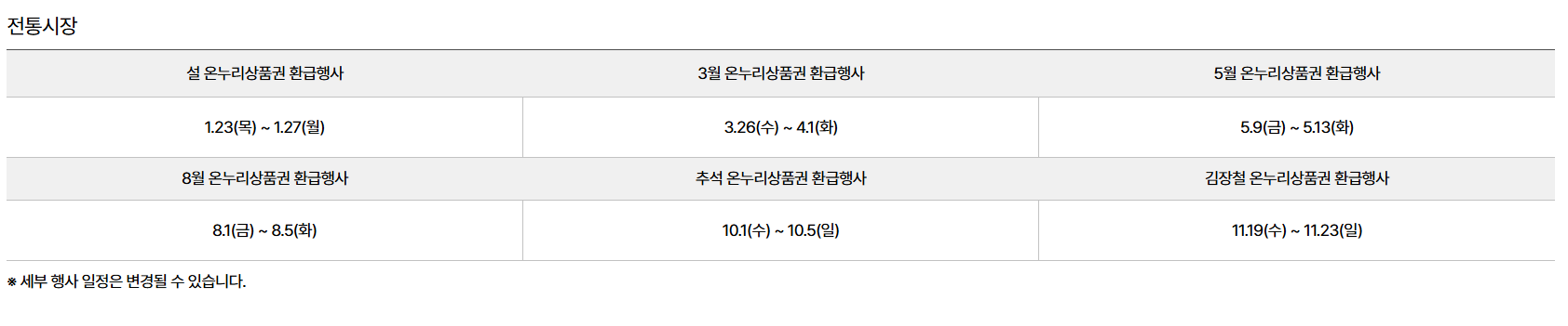 전통시장 환급 기간(11월 19~23일)만 별도로 체크해야 합니다.