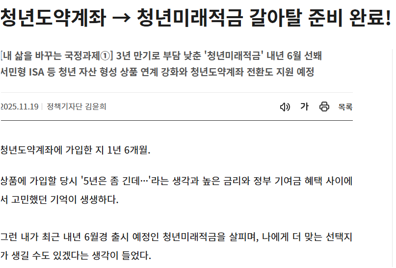 청년도약계좌 → 청년미래적금 갈아탈 준비 완료!