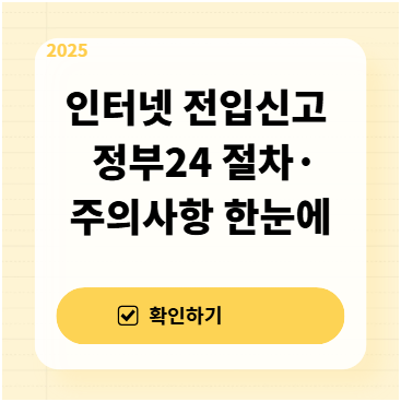 전입신고는 이사한 날부터 14일 이내에 해야 하고, 요즘은 대부분 인터넷으로 쉽게 신청합니다. 특히 정부24를 이용하면 주민센터 방문 없이 전입신고 + 확정일자 자동 처리가 한 번에 가능해 편리합니다. 하지만 신청 과정에서 ‘임대인 동의 필요 여부’, ‘세대분리 조건’, ‘공동인증서 필요 여부’ 등 헷갈리는 부분이 많습니다. 이 글에서는 2025년 기준으로 인터넷 전입신고 방법,