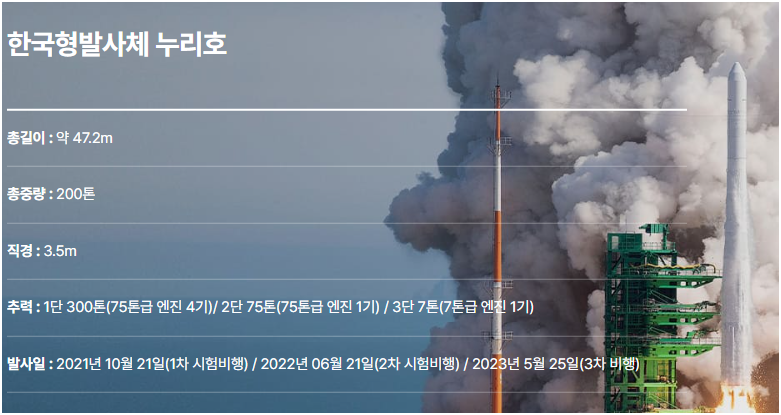 누리호 발사체 정보는 한국항공우주연구원에서 공식 자료를 확인할 수 있습니다.