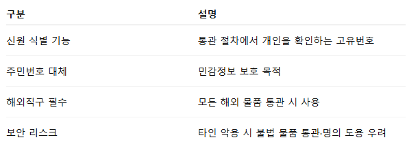 개인통관번호는 해외 물품 통관에 직접 사용되기 때문에 유출 시 보안 조치가 매우 중요합니다.