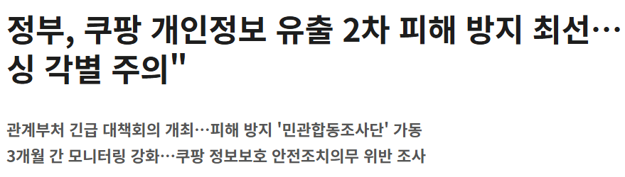 특히 최근에는 정부에서 정부는 쿠팡 침해사고 및 개인정보 유출 사태와 관련해 신속한 대응과 국민 피해 확산 방지를 위해 긴급 대책회의를 정부서울청사에서 개최하였습니다. 관련 내용은 대한민국 정책브리핑에서 확인하실 수 있습니다.