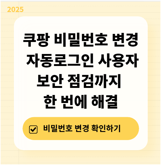 쿠팡 비밀번호 변경은 모바일과 PC에서 모두 가능하며 로그인 상태에서도 즉시 변경할 수 있습니다.