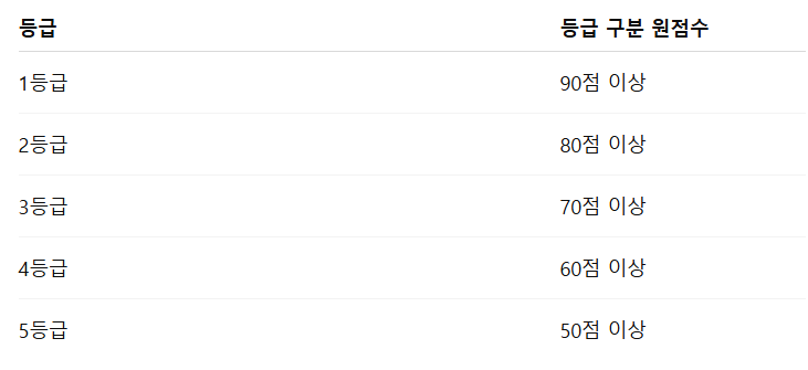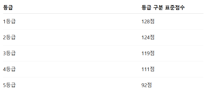 ※ 9등급까지 모두 발표되었으나, 표에서는 5등급까지 핵심만 발췌했습니다.
