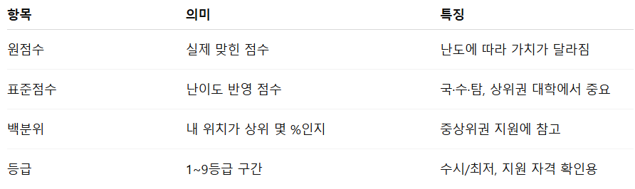 “원점수 몇 점인데, 이 점수가 이번 해 난이도 기준으로 어느 등급인지”를 확인하는 과정이 중요합니다.