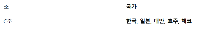 한국은 일본·대만·호주·체코와 함께 C조 배정