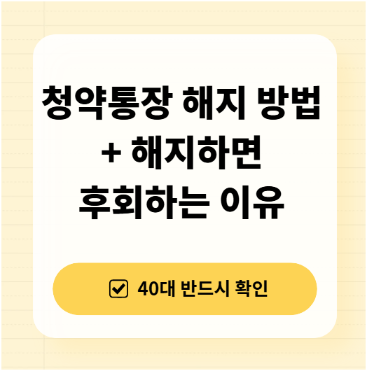해지방법은 간단하지만, 40대에게 청약통장은 당첨 가능성을 열어주는 거의 유일한 제도적 장치입니다.