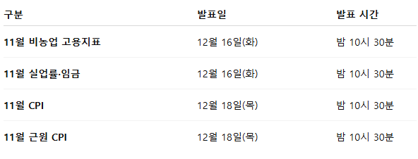 👉 11월 고용지표가 12월 16일(화)에 예외적으로 발표