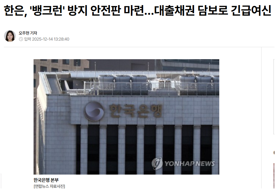 이번 한은의 뱅크런 대비 조치는 그 신뢰를 유지하기 위한 장치로 볼 수 있습니다.