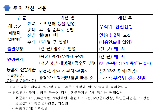 공군 뺑뺑이 선발 도입과 함께 선발 주기도 달라집니다.
