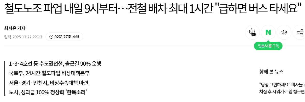 시민 입장에서는 노사 협상 결과보다 당장 내일과 모레의 이동 계획이 중요하기 때문에, 단기적인 교통 혼잡을 염두에 둔 대응이 필요합니다.