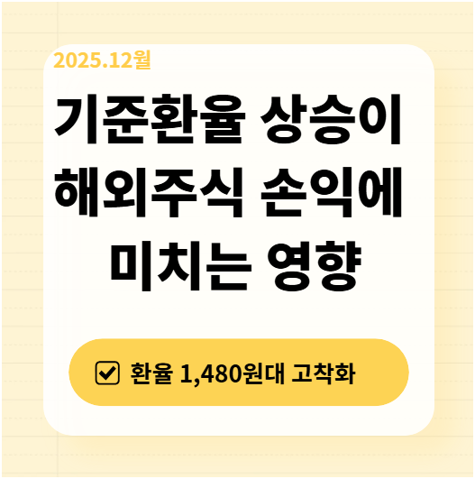 원/달러 환율이 1,480원대를 유지하는 상황에서는 해외주식 손익이 주가뿐 아니라 환율에 크게 좌우됩니다. 기준환율 상승은 원화 기준 수익을 키울 수도 있지만, 동시에 세금 부담도 함께 늘어날 수 있습니다.