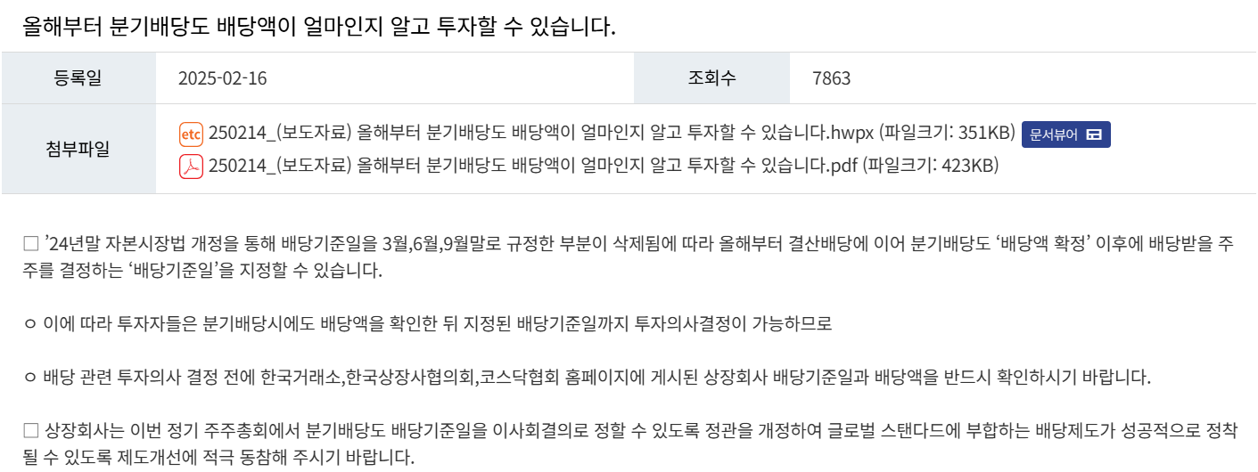 본 글은 2025년 기준 공개된 제도 안내를 바탕으로 정리한 내용이며, 실제 배당 일정과 세금은 기업별 공시와 개인별 상황에 따라 달라질 수 있습니다.