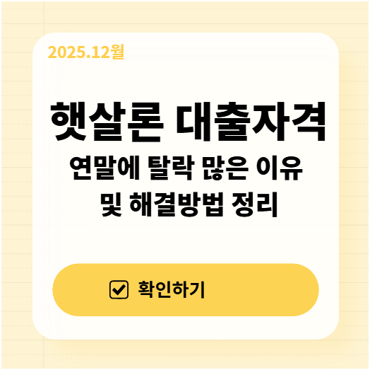 햇살론은 대표적인 정부지원 서민대출이라 조건만 맞으면 받을 수 있다고 생각하기 쉽습니다. 하지만 실제 신청 과정에서는 소득도 있고 직장도 있는데 거절되는 경우가 적지 않습니다. 햇살론은 단순한 저금리 상품이 아니라, 자격·상환 가능성·최근 금융 이력을 함께 보는 구조이기 때문입니다. 12월 기준으로, 왜 햇살론이 안 되는지부터 차분히 살펴봅니다.