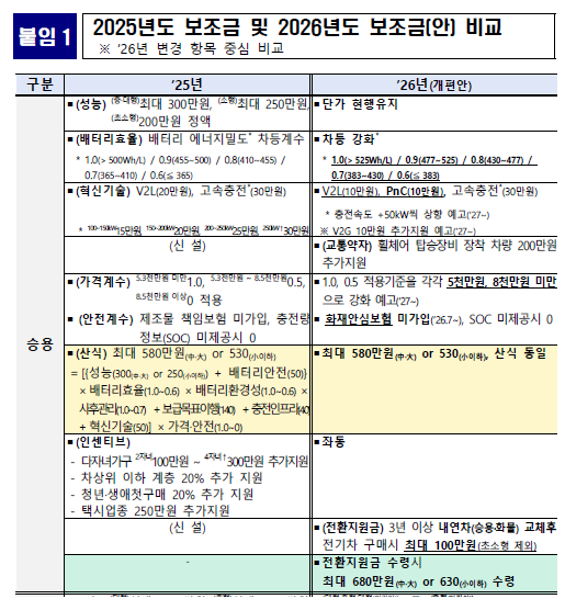 자료 출처: 기후에너지환경부 보도자료 및 2026년도 전기자동차 보급사업 보조금 업무처리지침 개편안.