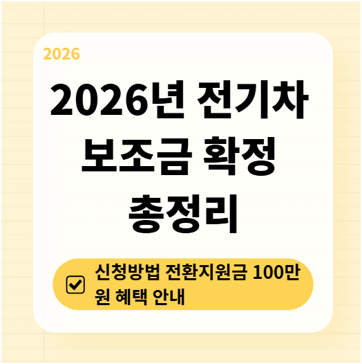 2026년 전기차 보조금은 단가가 유지되면서 내연차 전환 지원이 신설되어, 차를 바꿀 계획이 있는 분들에게는 아주 좋은 기회입니다. 가성비 모델을 선택하여 100% 지원을 받고, 전환지원금 100만 원까지 알뜰하게 챙겨보시길 바랍니다.