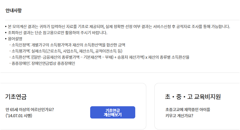 [ 📌 복지로 누리집 : 기초연금 소득인정액 모의계산기 ]