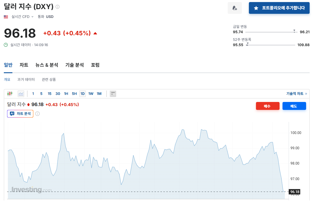 2026년 1월 현재의 달러화 약세는 미국의 정치적 상황과 정책 방향이 달러 인덱스 지수에 즉각 반영되고 있는 이례적인 상황입니다.