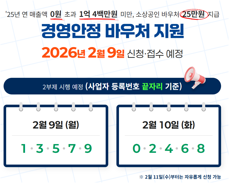 설 명절 전인 2월 9일부터 신청이 시작되며, 초기 혼잡을 막기 위해 2부제가 운영됩니다.