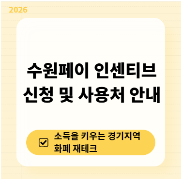 수원페이는 수원시 내 소상공인 가맹점에서 사용할 수 있는 카드형 지역화폐로, 충전 시 일정 비율의 인센티브를 즉시 지급합니다.