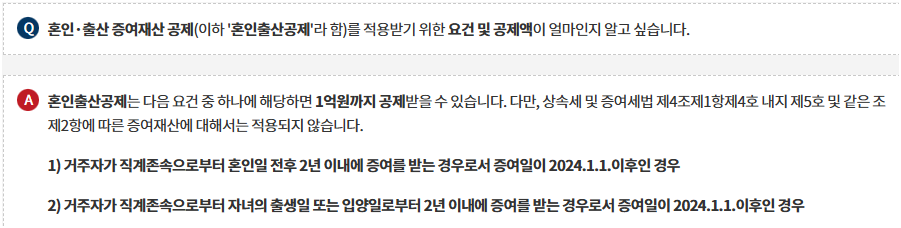 자녀가 결혼을 한다면, 그 전후 2년 이내 증여 시 혼인·출산 공제가 추가 적용될 수 있어요.