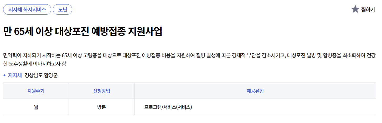 (아래 버튼을 누르시면 65세 이상 대상포진 예방접종 상세내용을 파악할 수 있는 복지로 사이트로 이동가능합니다.)