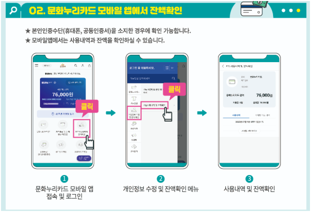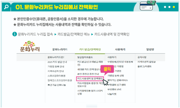 문화누리카드 잔액조회 - 조회 시 주의사항 비밀번호, 인증, 사용내역