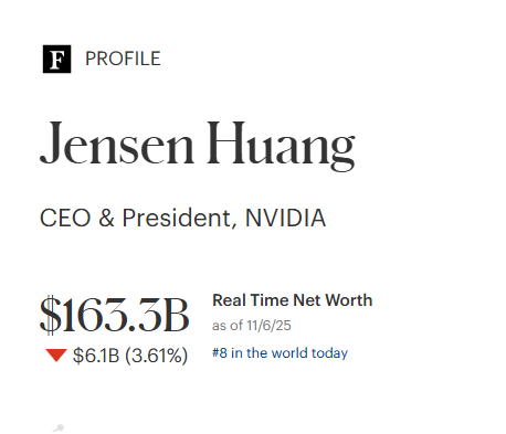 이처럼 그의 순자산은 대부분 엔비디아의 주가에 따라 변동되며, 현금성 자산보다 주식 가치 중심형 부를 유지하고 있습니다.